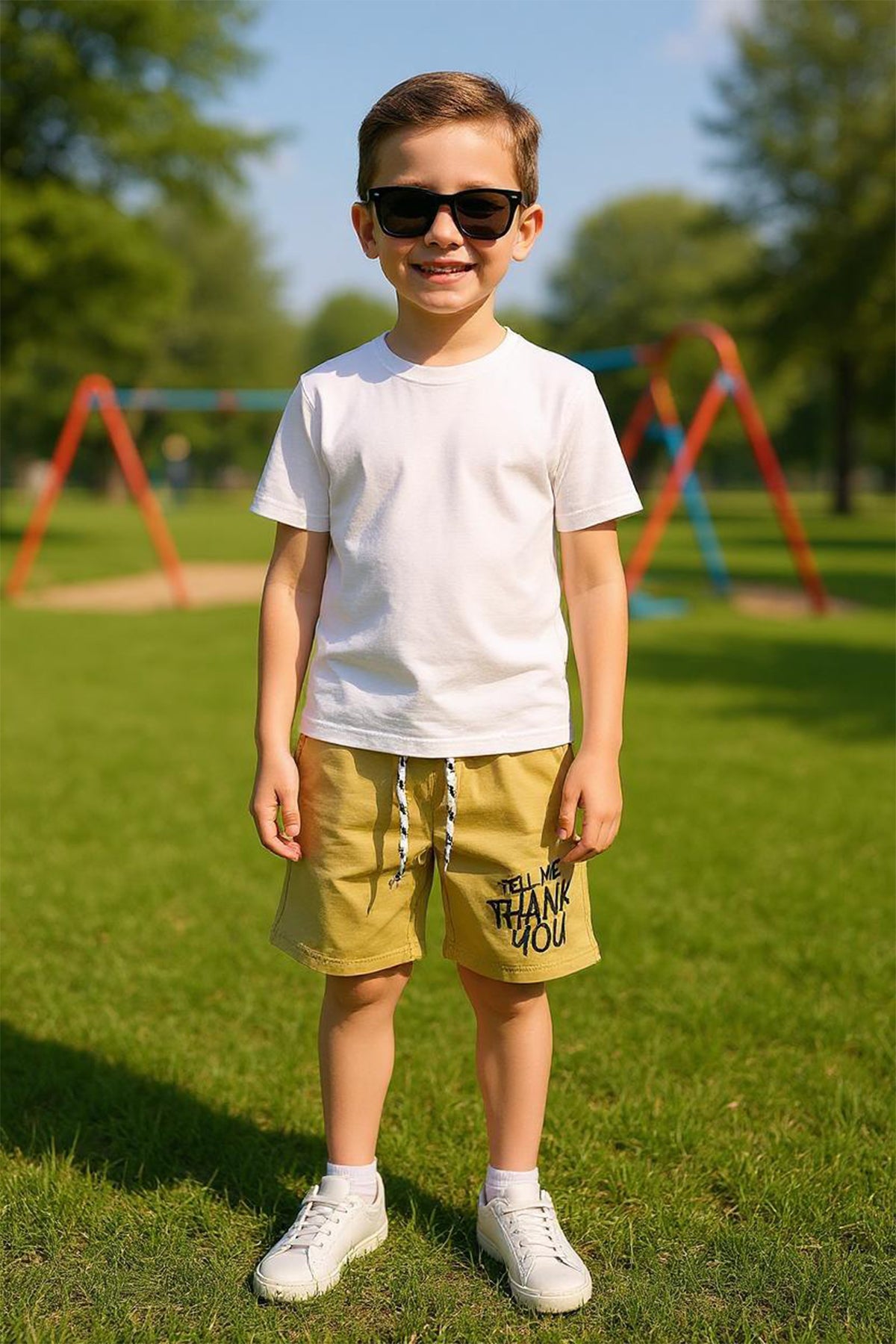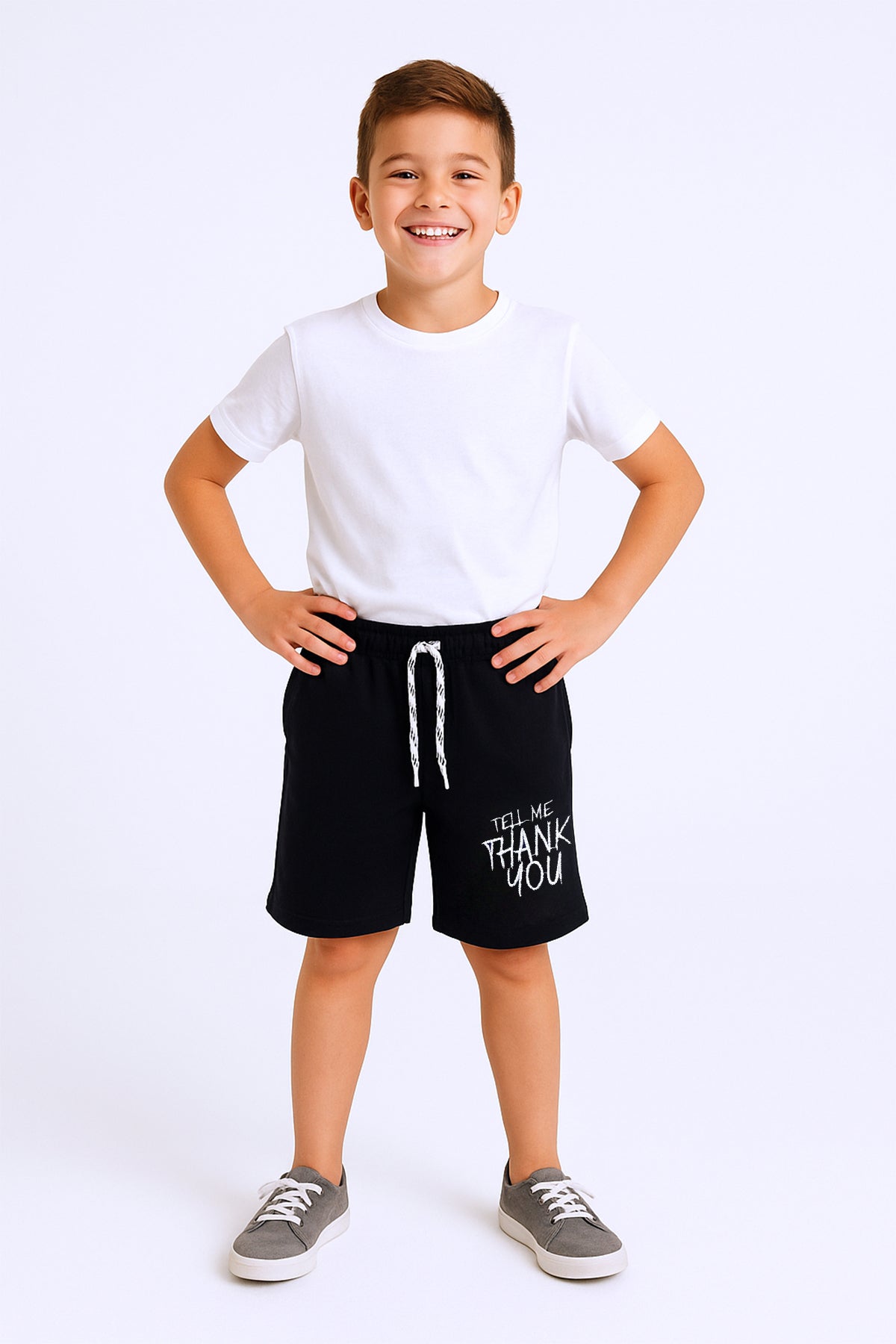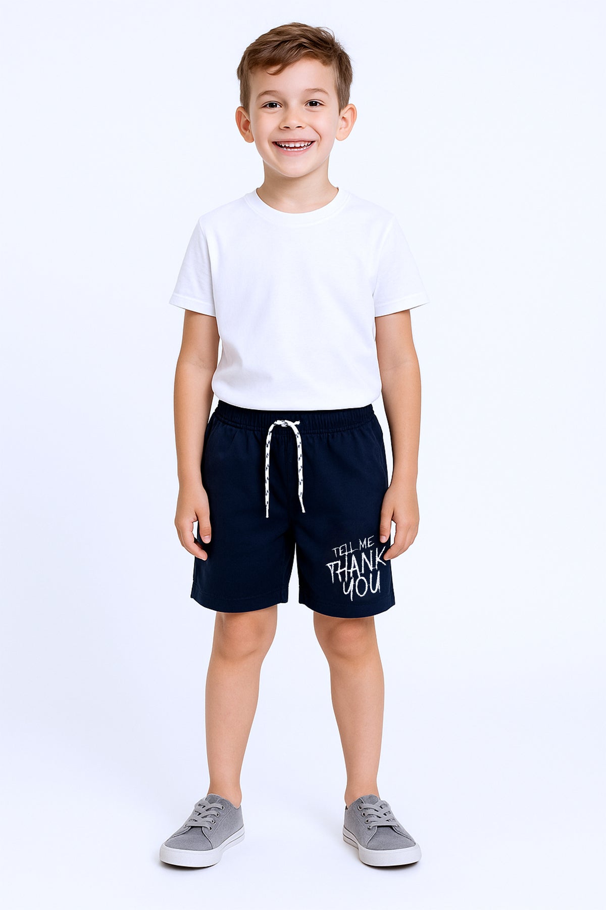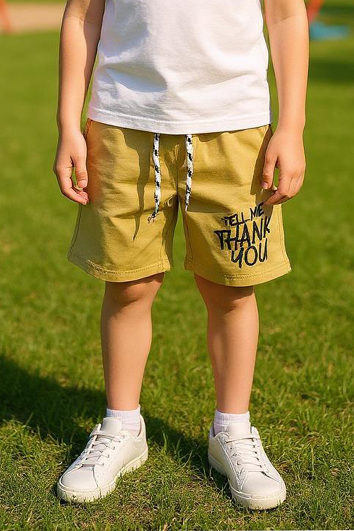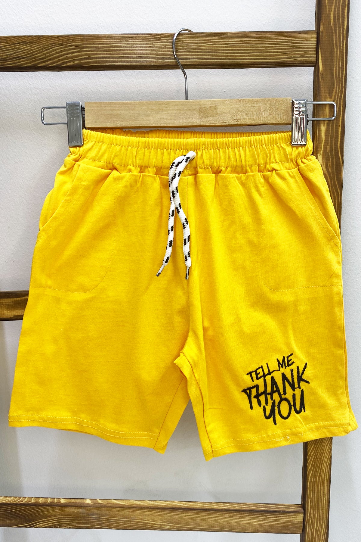 ERKEK ÇOCUK ŞORT CEPLİ DÜZ RENK YAZI BASKILI F29